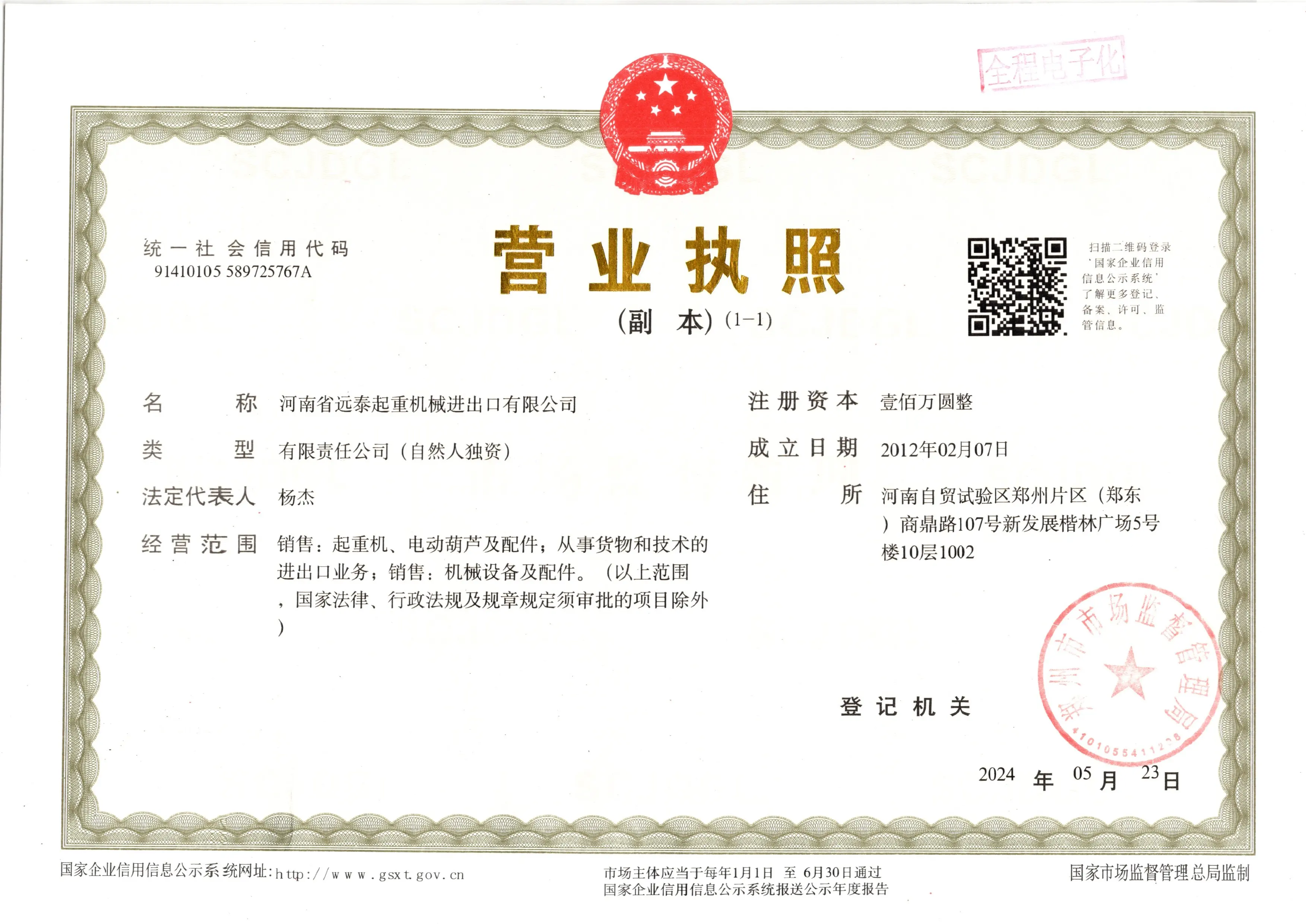 Company Name : Henan Yuantai Crane Machinery Import & Export Co., Ltd.